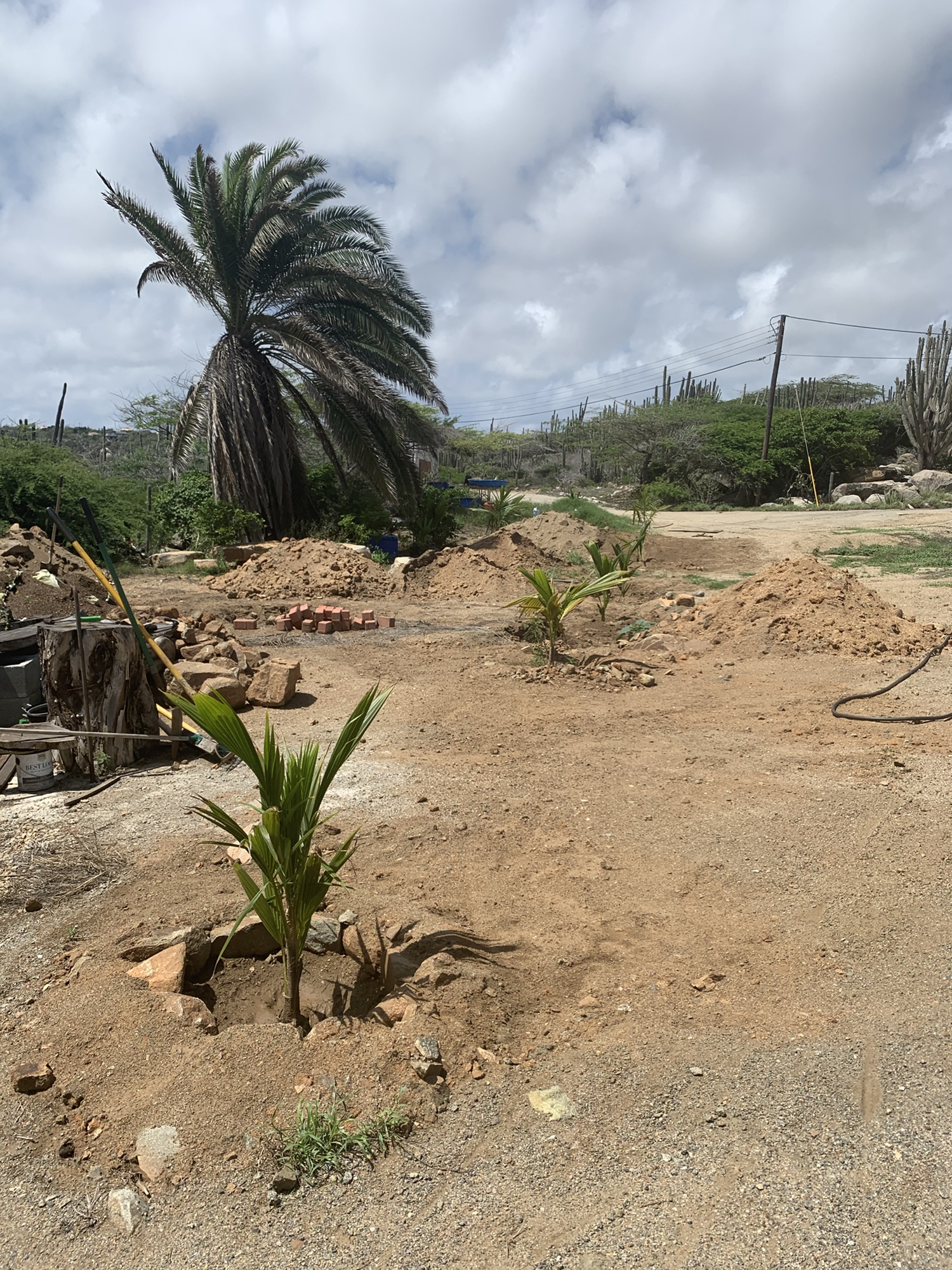 Need to get a small backhoe to clean up the sand hills that are left over, after filling the holes with a good mixture of potting soil, horse manure and the actual ground fill